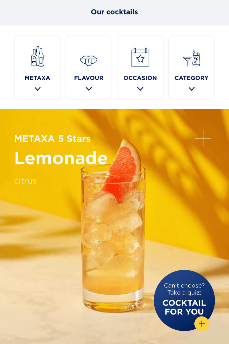 METAXA needed a digital home that matched its bold spirit and global ambition. A flagship experience that could carry the "Taste the Unexpected" positioning into every market - and translate brand storytelling into scrollable, usable, evolving design.